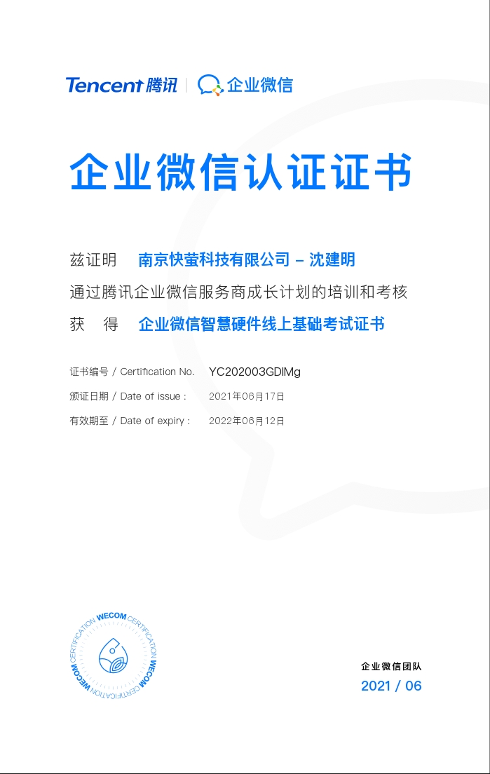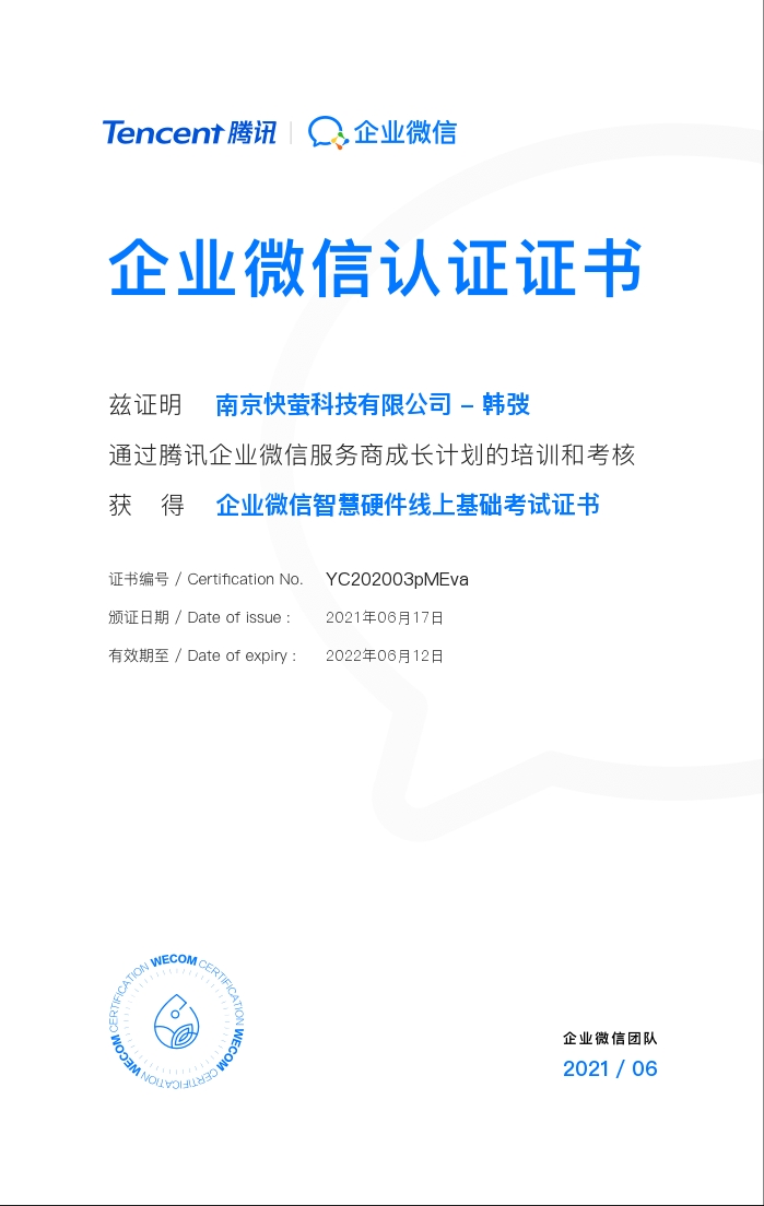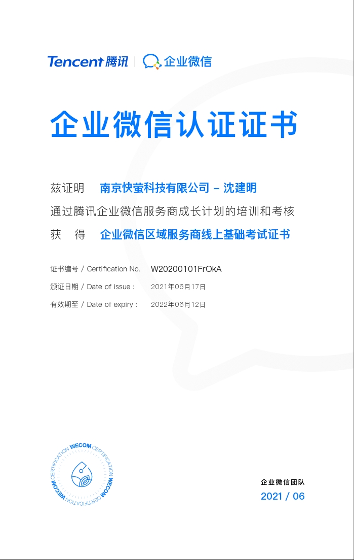 快萤团队-企业微信服务商学习证书